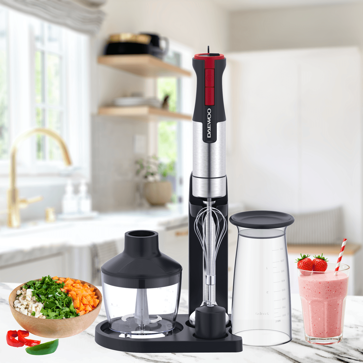 @ 3 in 1 function : Blender Chopper Whisk